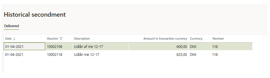 In this view you can see the history of your previous secondments.