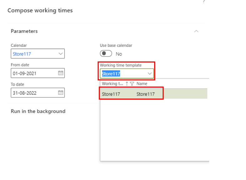 Write in your store in the ‘Working time template’. You should write in ‘Store117’. Of course, with the