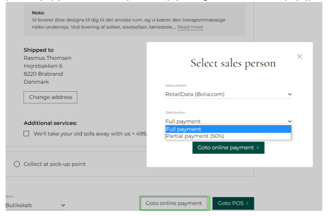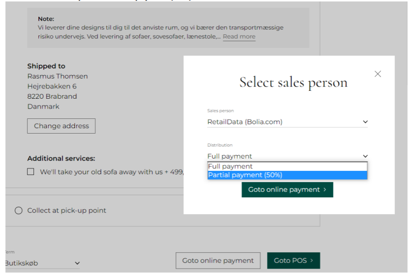 (In this Pop-up you can select sales person and payment agreement – Full or 50% prepay)