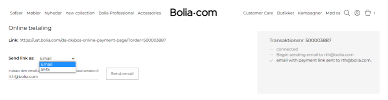 In the next view you send the payment link to your customer. Select if you wish to send it via email or text