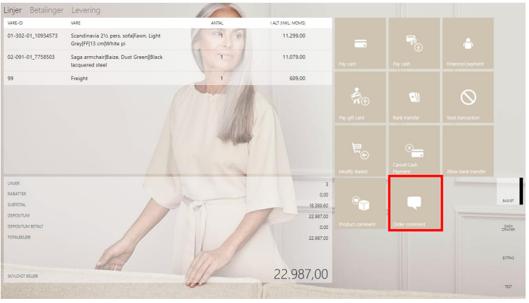 In The POS click the button ‘Order comment’