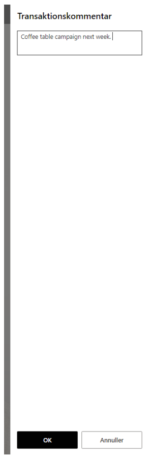 When you are completing a sale in the POS you can use the function ‘Order comment’. Here you can write a small text, that will appear on the order confirmation.