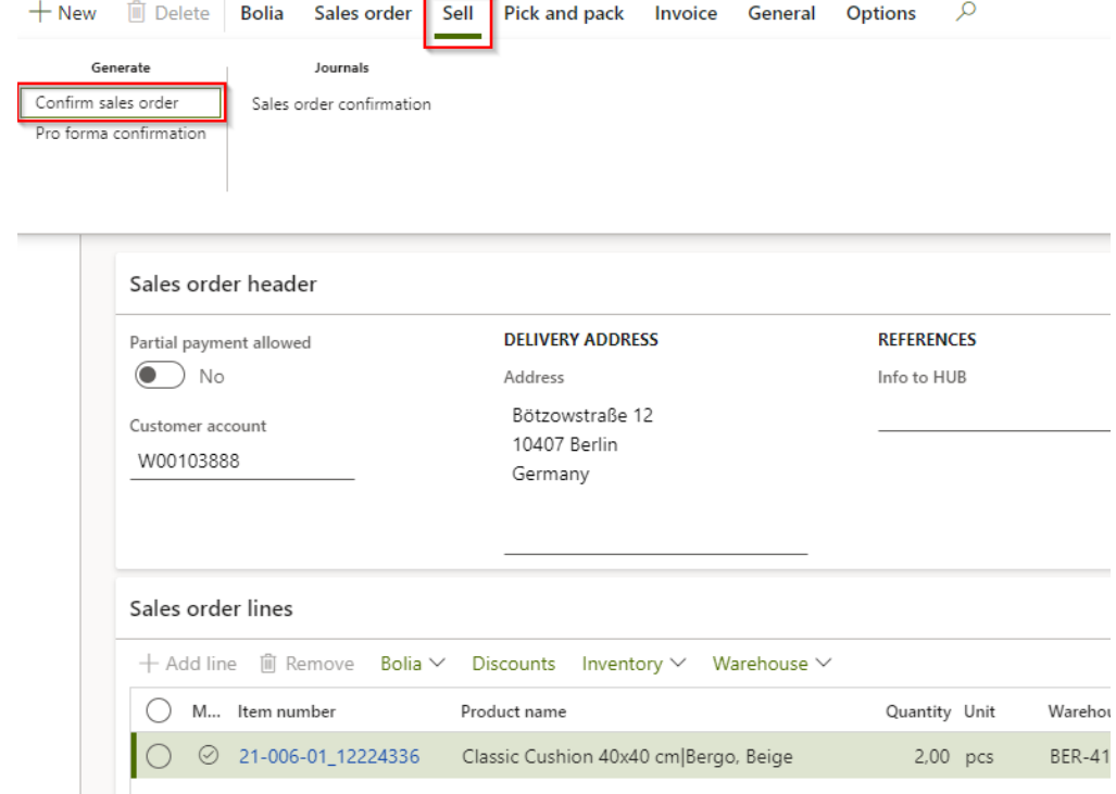 Under ‘Sell’ click on ‘Confirm sales order’