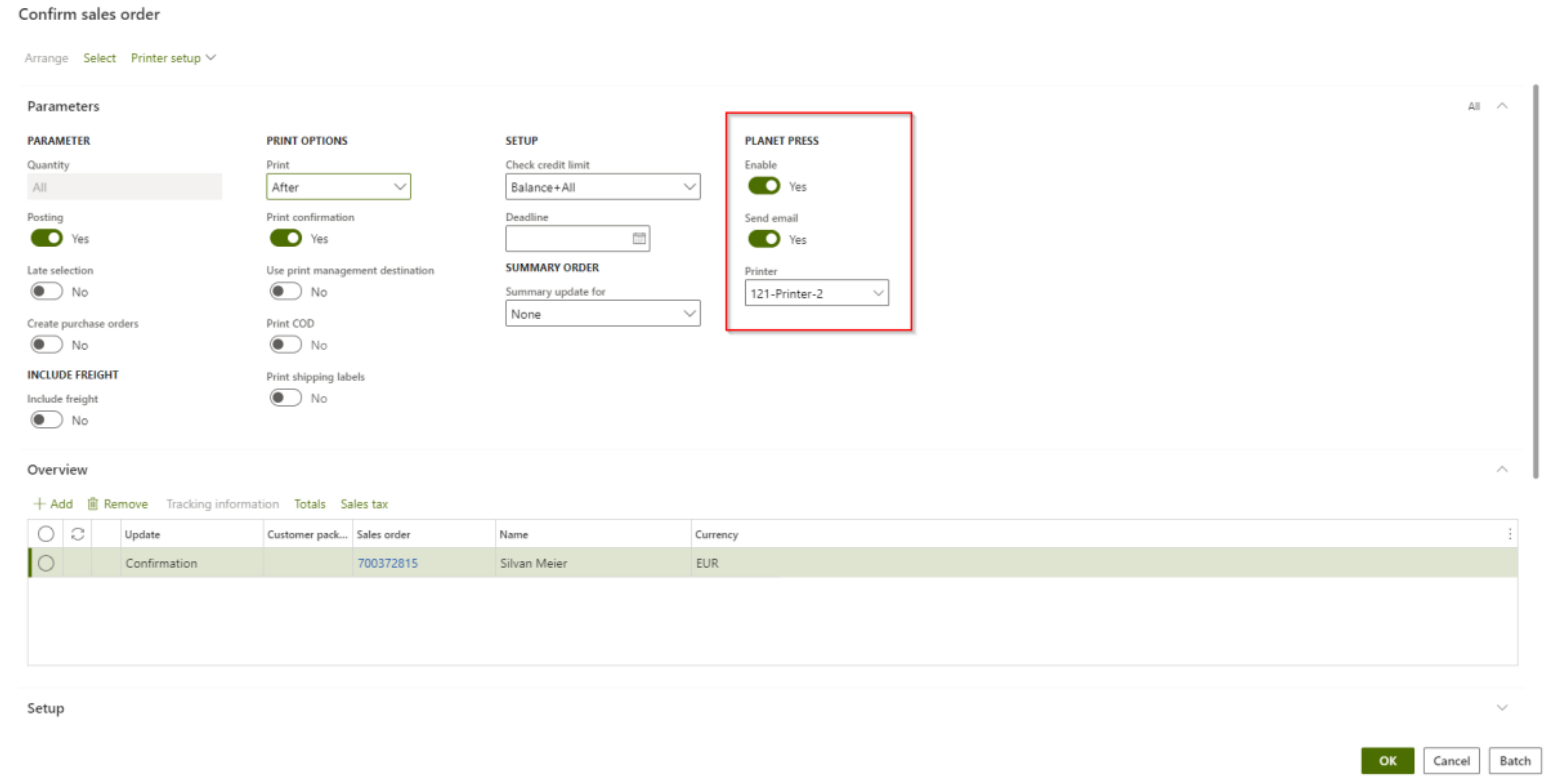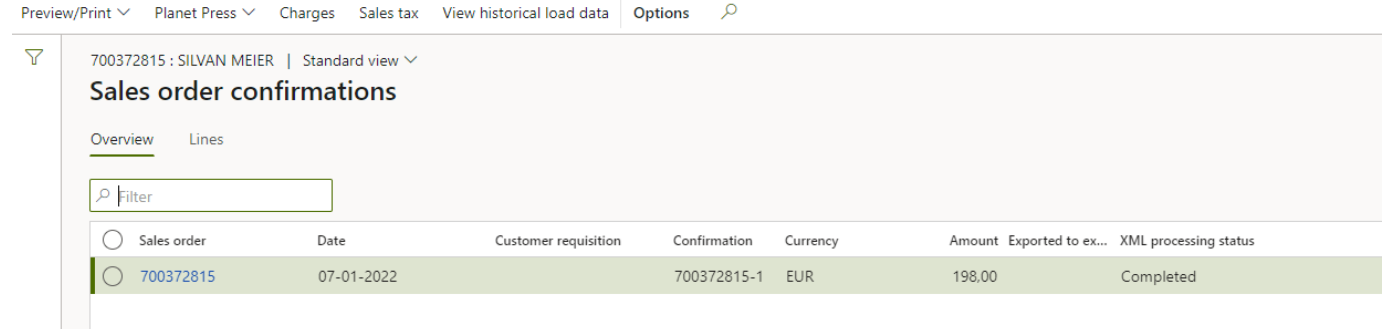 Here you can view earlier sales order confirmations. You can print out the confirmation by using ‘Planet