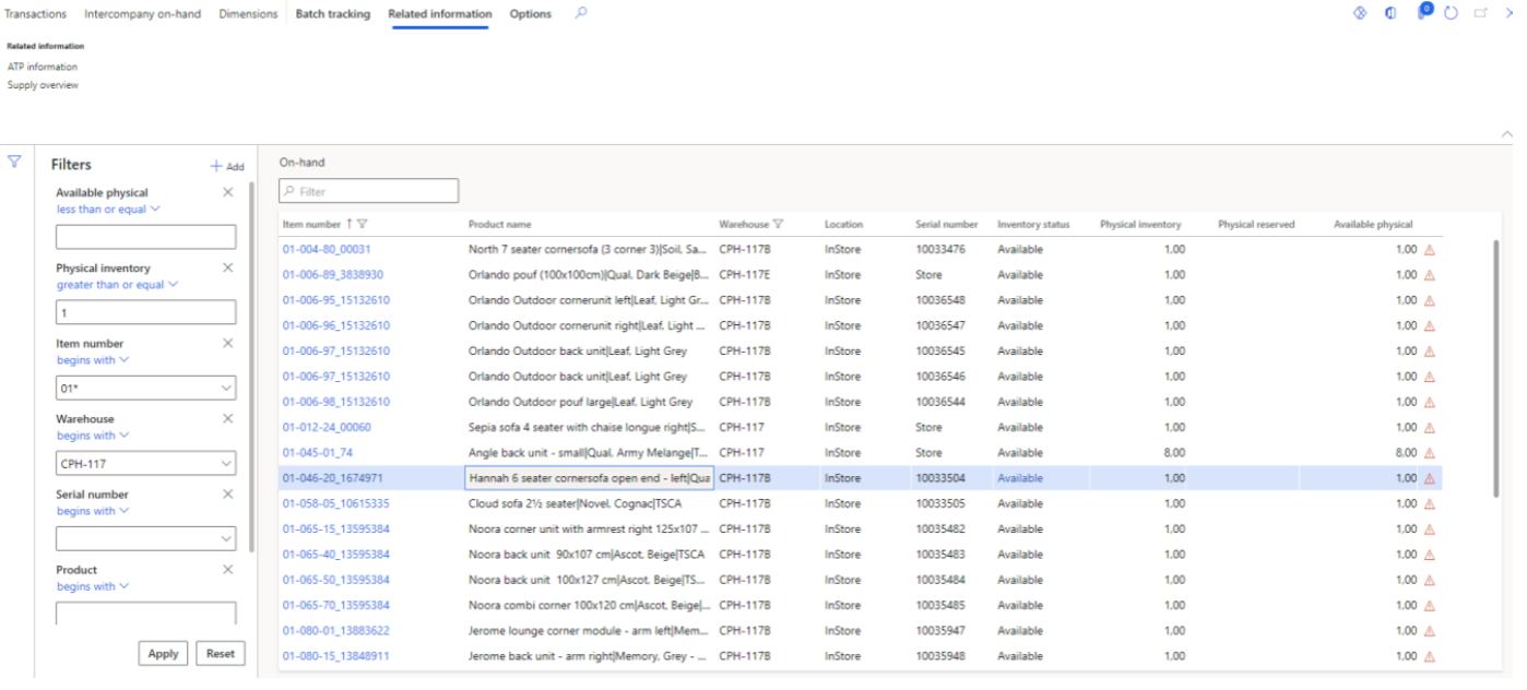 Find the item in the On-hand you want to see transactions for and click on ‘Transactions’