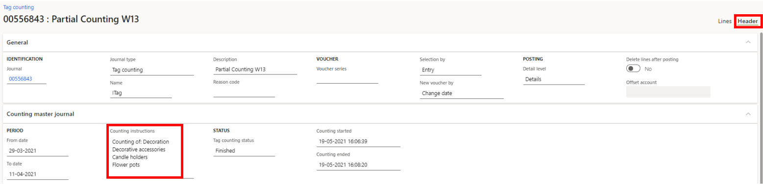2: Correct it manually in D365 --> Tag counting - Manual adjustments