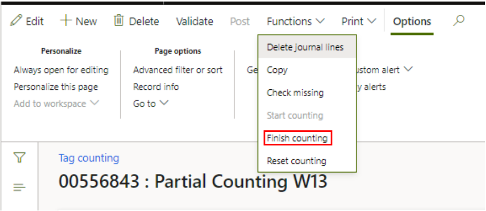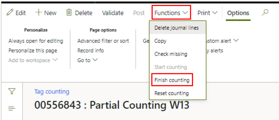 When you have corrected what needs to be corrected click ‘Functions’ and choose ‘Finish counting’