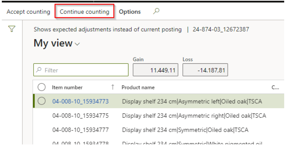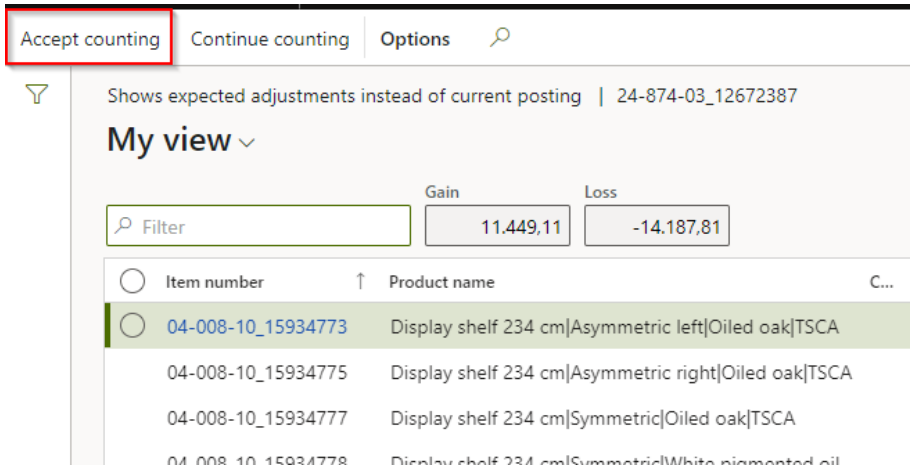 If you conclude that the counting is now correct move on by clicking ‘Accept counting’ and the counting will be posted.