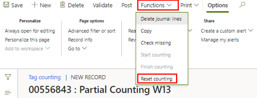 Under ‘Functions’ click ‘Reset counting’. Click ‘OK’ in the next window