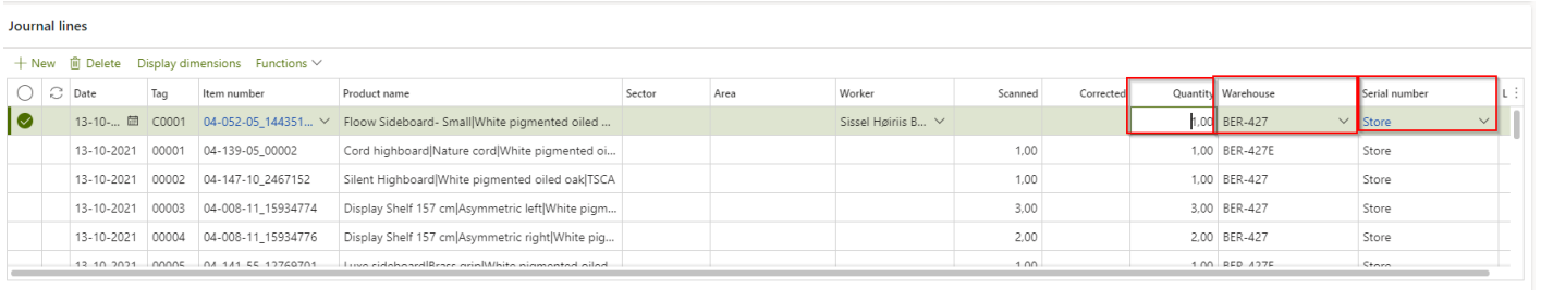 Serial number field and the warehouse.