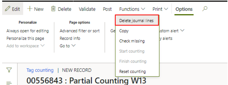 Go to ‘Functions’ and click ‘Delete journal lines’