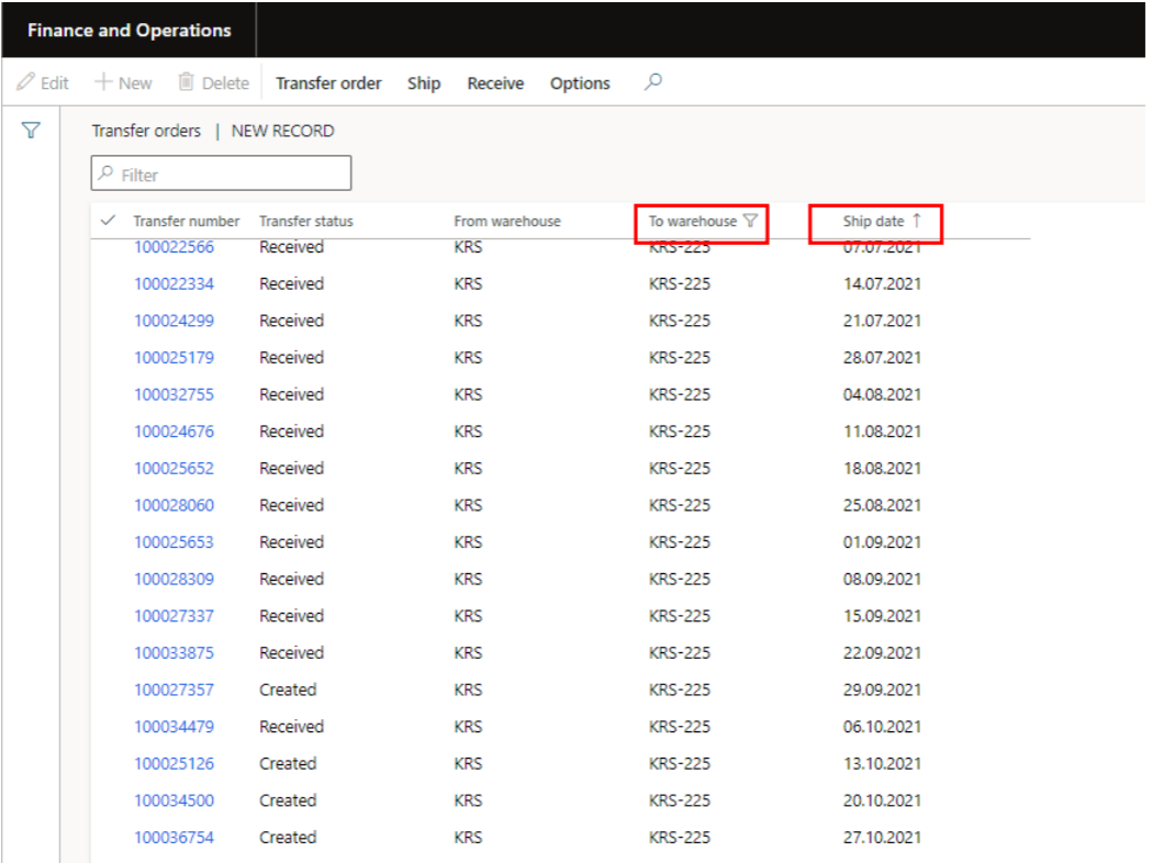 To use this front page in the easiest way you should filter “to warehouse” with you store warehouse (i.e.