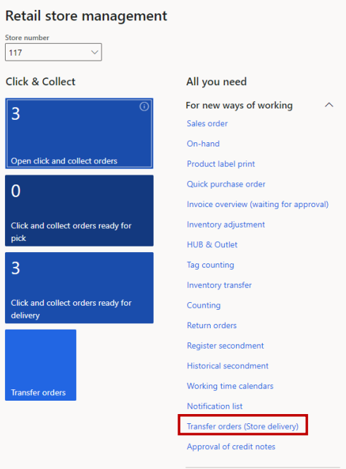 transfer and the date of the delivery. Just click on the transfer order number to go to the specific transfer