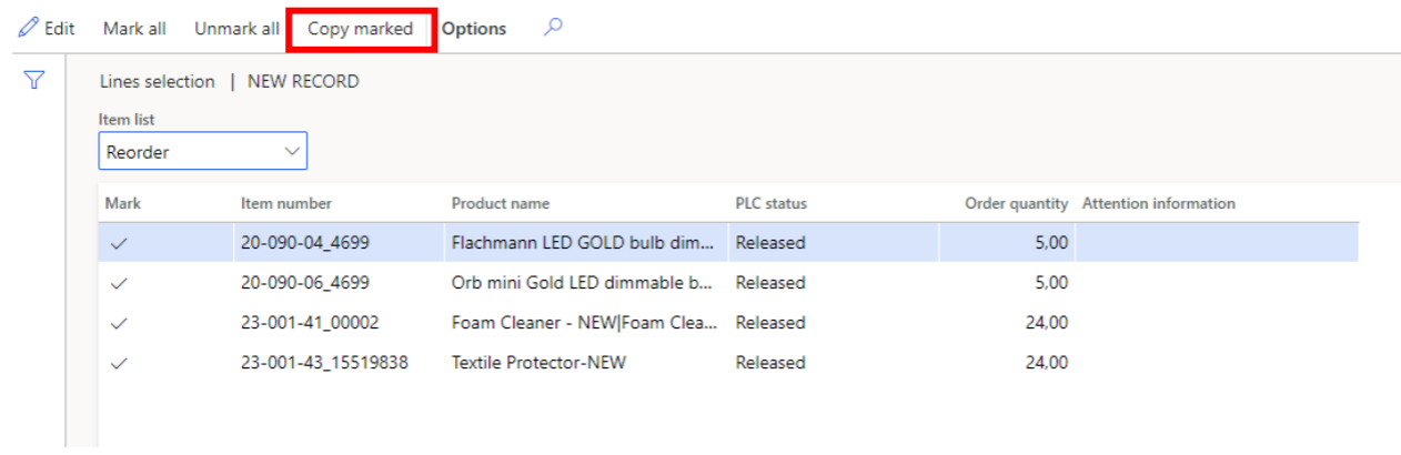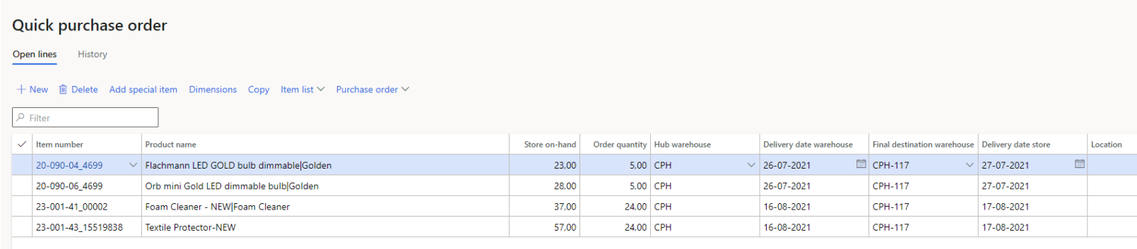 Go to ‘Quick purchase order’ and fill in lines with all the items you want to make a list for.