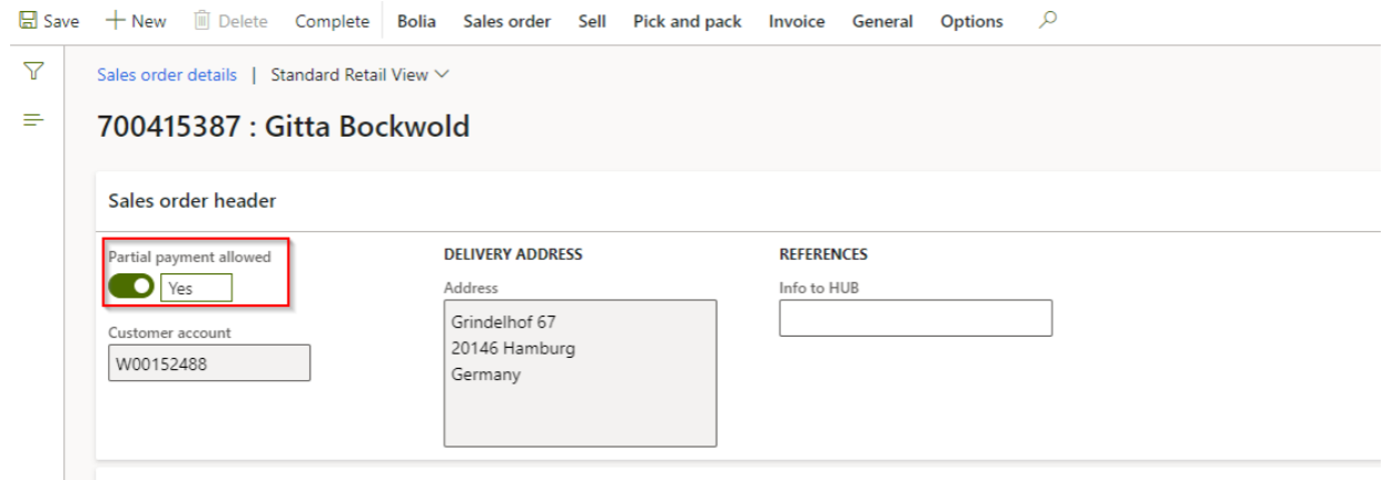 Always flip the parameter “Partial payment allowed” to Yes whenever you have a sales order that is paid