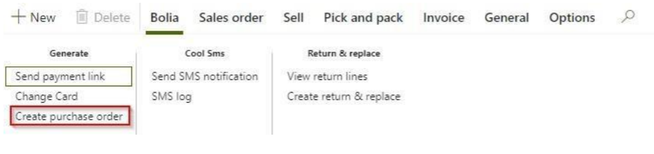 Go to the 'Bolia' tab and press 'Create purchase order'