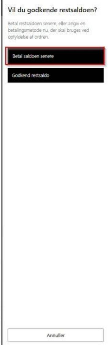 Click on 'Pay the amount later'