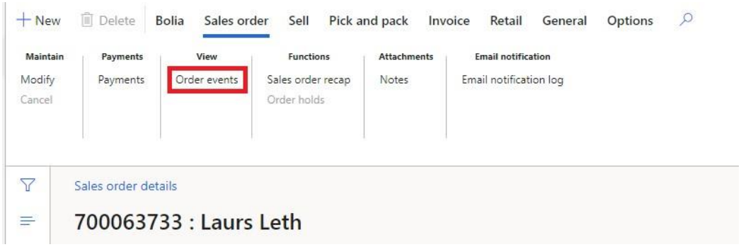 Click on 'Order events' under 'Sales order'
