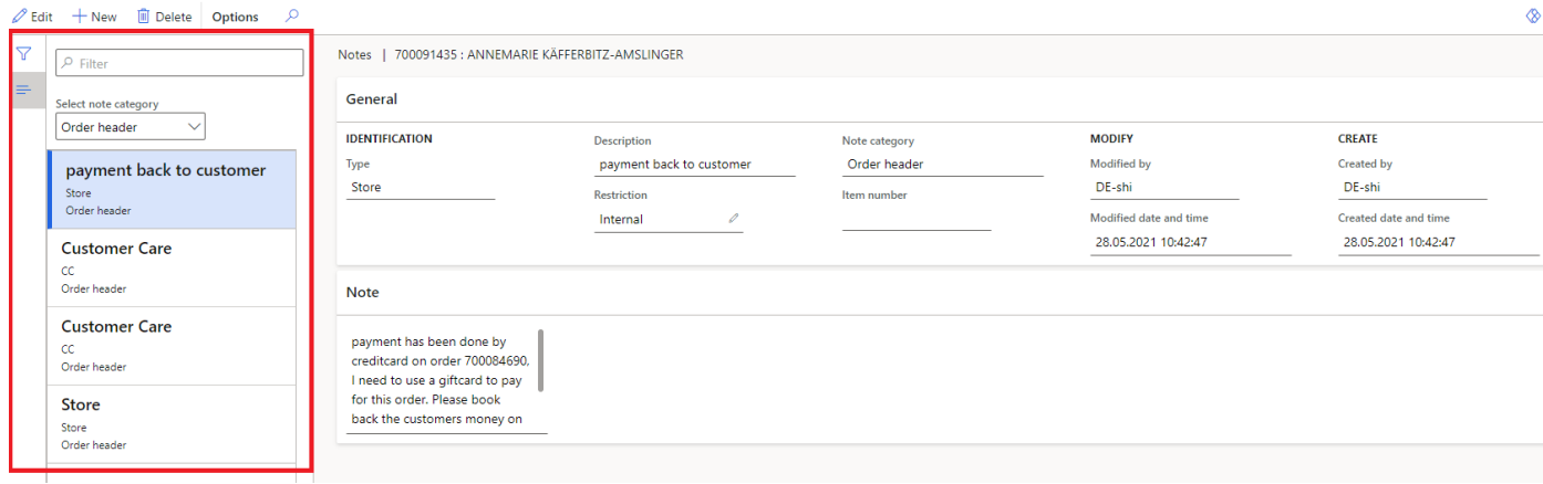 If there are more than one note saved on the order the overview will show you the Log-History