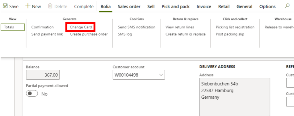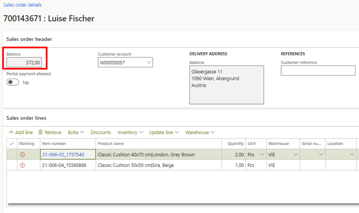 When you have added new items to the order you can see that the order has a ‘Balance’’