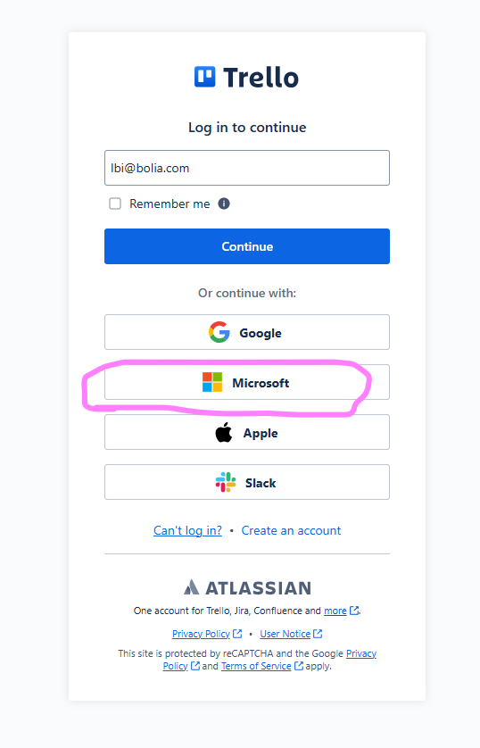 If you can't login to Trello because you get the error "We can't find an account for that email address" or "incorrect email address", it is because you are not logging in through Microsoft.