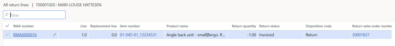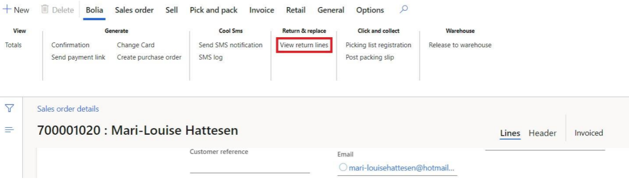Go to the sales order and click on ‘View return lines’ under ‘Bolia’