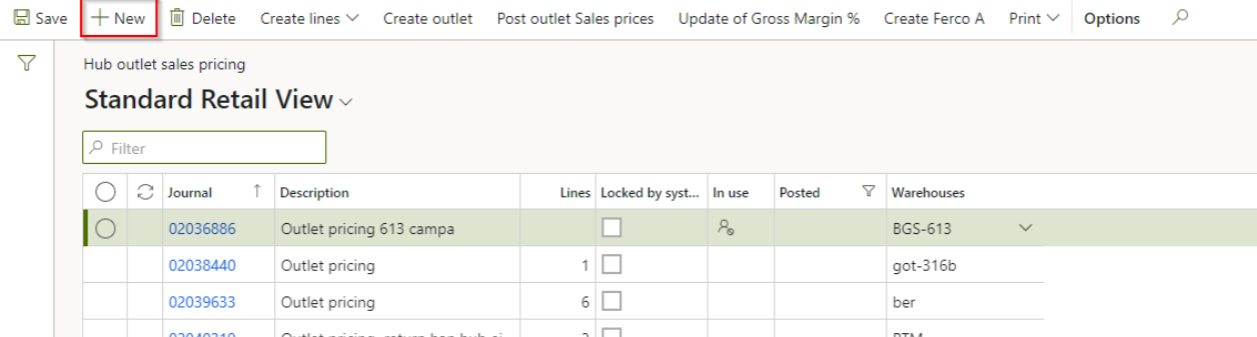 Go to HUB & Outlet and create a new Journal, by pressing 'New'