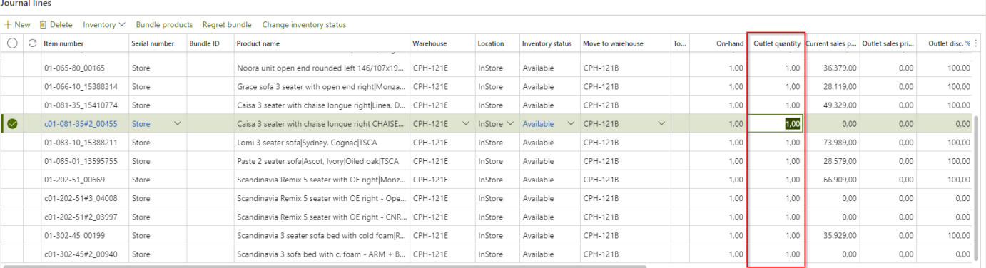 Fill in the item number for the items you want to put on outlet and press ‘OK’.