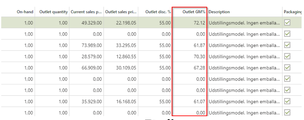 To see if the price matches Bolia Gross margin standards click ‘Update of Gross Margin %’.