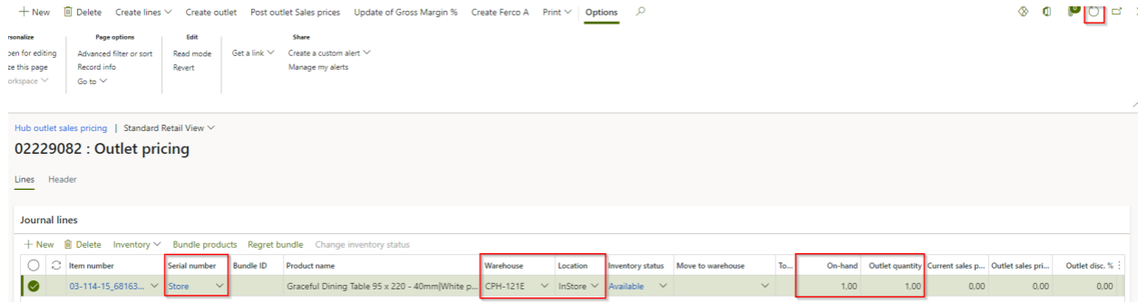 Put in the amount you want to transfer to the outlet in the ‘Outlet quantity’ and click ‘Refresh in’ the right corner.