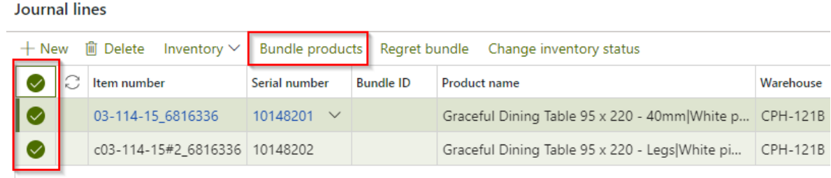 Mark all the items that should be bundled together and click ‘Bundle products’.