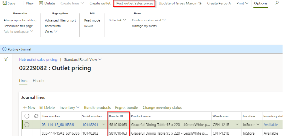 Now you can fill in the outlet sales price, both manual or with percentage, the description of the item and