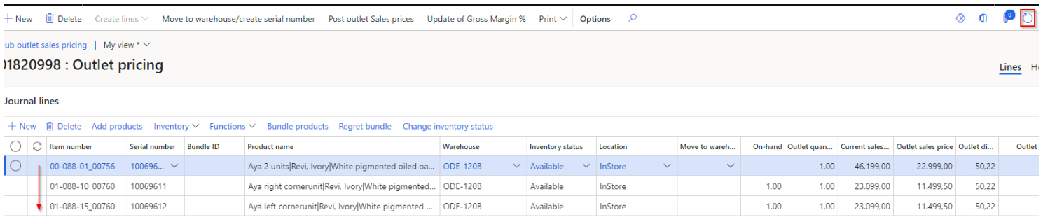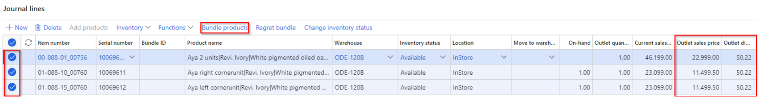 Add 00-item number, serial number, warehouse, location and Outlet qty. manually to a journal