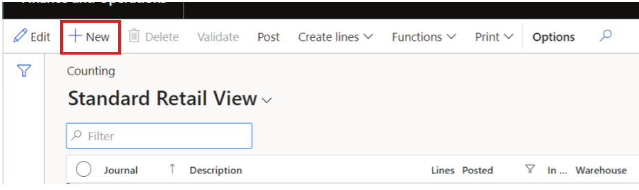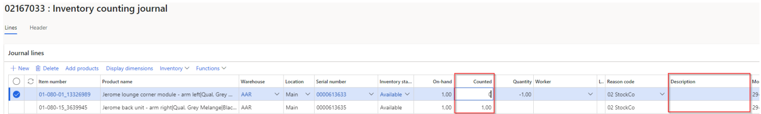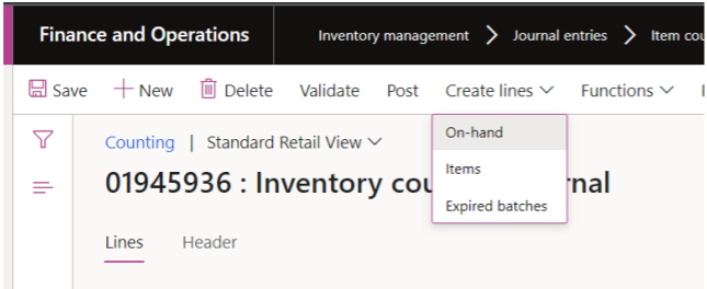 (when filter has been set – click OK in the view + OK in the Create on hand journal counting journal view to generate On hand counting lines)