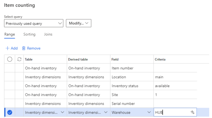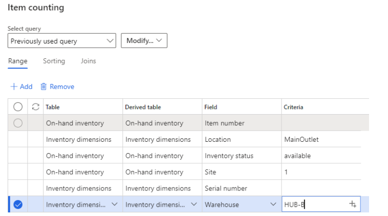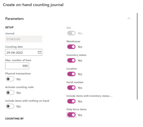 Create on hand journal counting lines – Parameter/filter setup