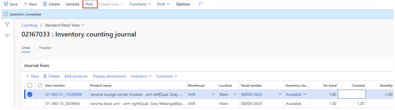 When all results has been updated in the journal – Finalize the counting by Posting the journal