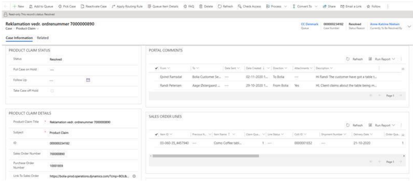 In ‘Product claim details’ all the order information is shown. If you scroll further down, you can see the