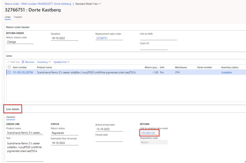Go to ‘Line details’ and click on the order number for the original sales order.