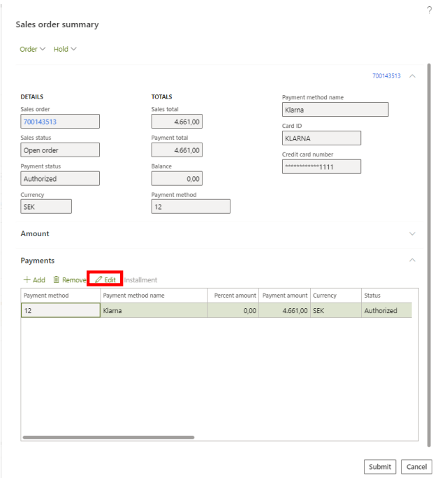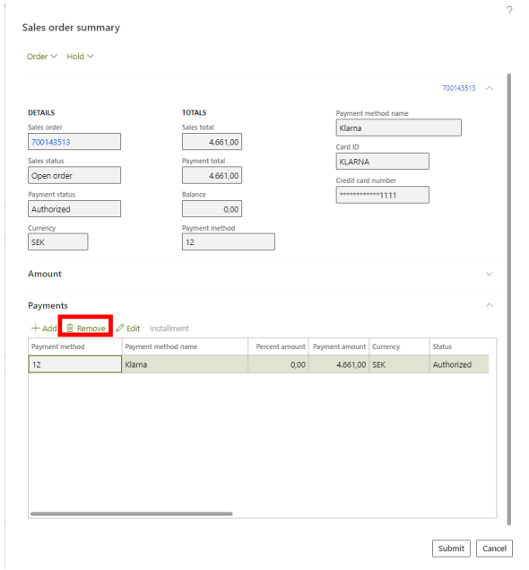 If the customer regrets the whole order. The Klarna payment line should be deleted.