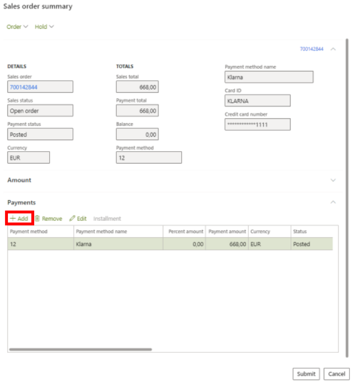 Under ‘Payment amount’ you should fill in the new total amount of the order.