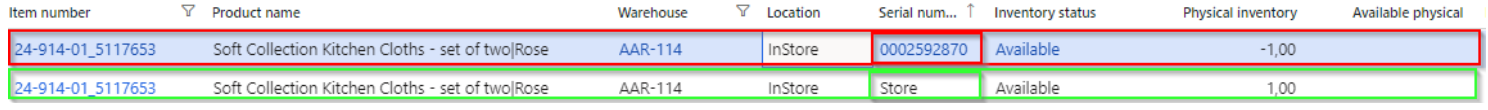 In this example we will make a transfer from serial number “Store” to Serial number “0002592870” to clear the conflict.