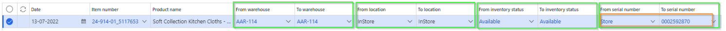 When you make the Inventory transfer – it is very important to pay attention to the from/to Dimensions – Warehouse, Location, Inventory status and serial number.