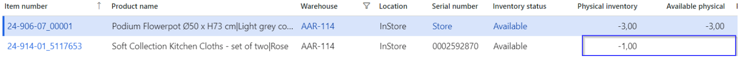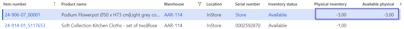 Another scenario is when we manually create a picking list for Click&Collect before the item has been received and has changed its serial number from 000xxxxxxxx to Store – then 000xxxxxxxx is stuck to the order and the item will get deducted from stock on hand on this serial number.